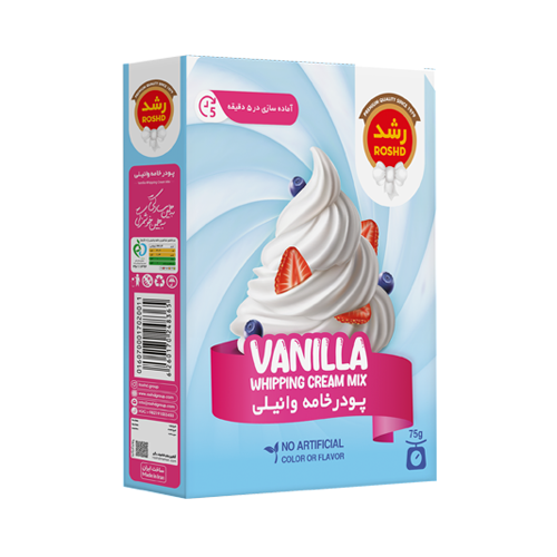 پودر خامه رشد با طعم وانیل، انتخابی عالی برای خامهکشی، تزیین کیک و دسرهای خوشطعم و حرفهای در چند دقیق